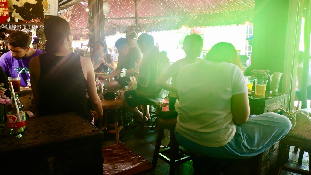 Everyone around us looked happy. The muggy weather did not seem to deter or upset anyone. Shopkeepers went about their business, selling and haggling with the buyers, while tourists and locals merged at eateries, sipping drinks and chatting while music played in the backdrop to elevate the mood of the place.