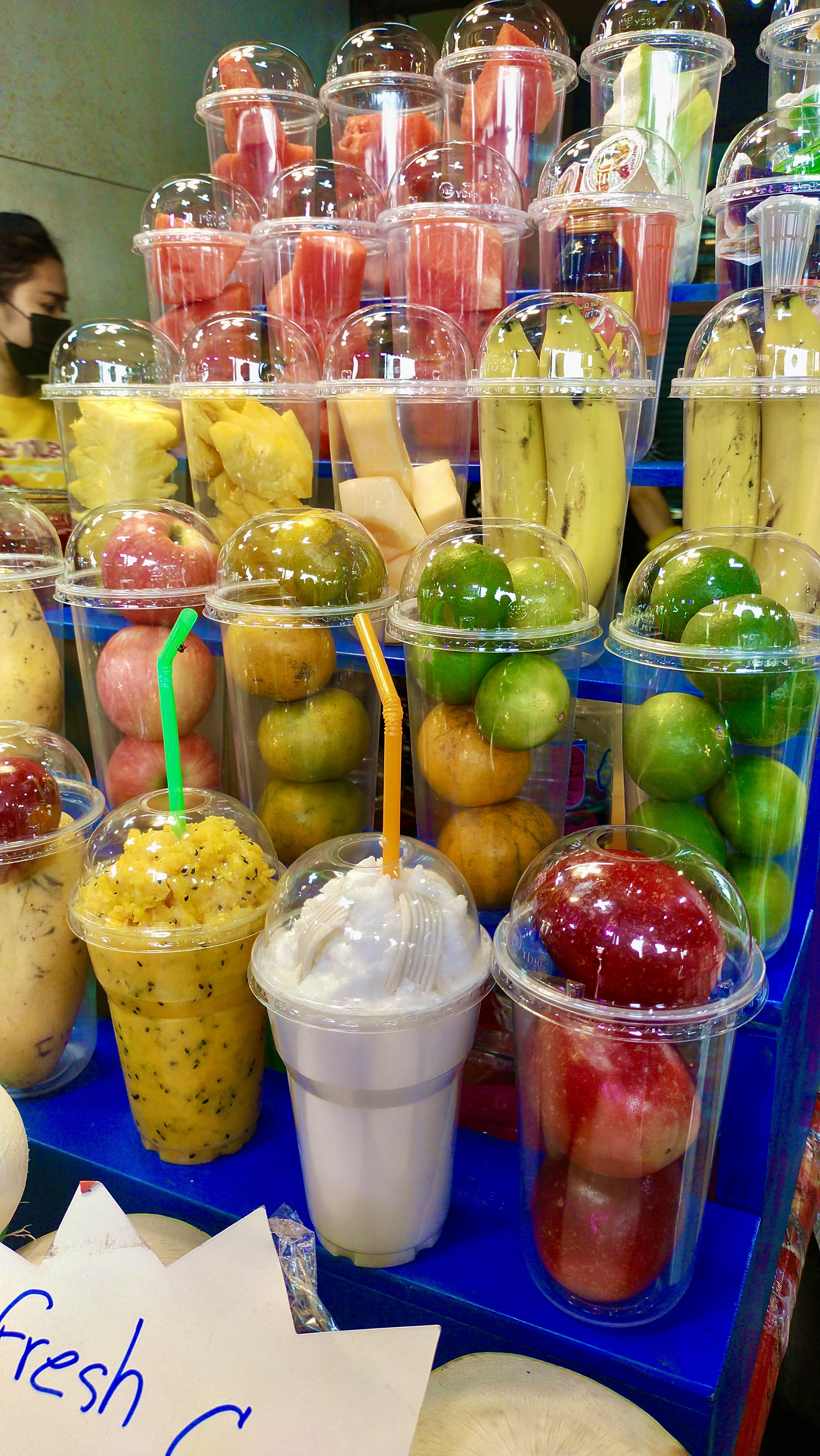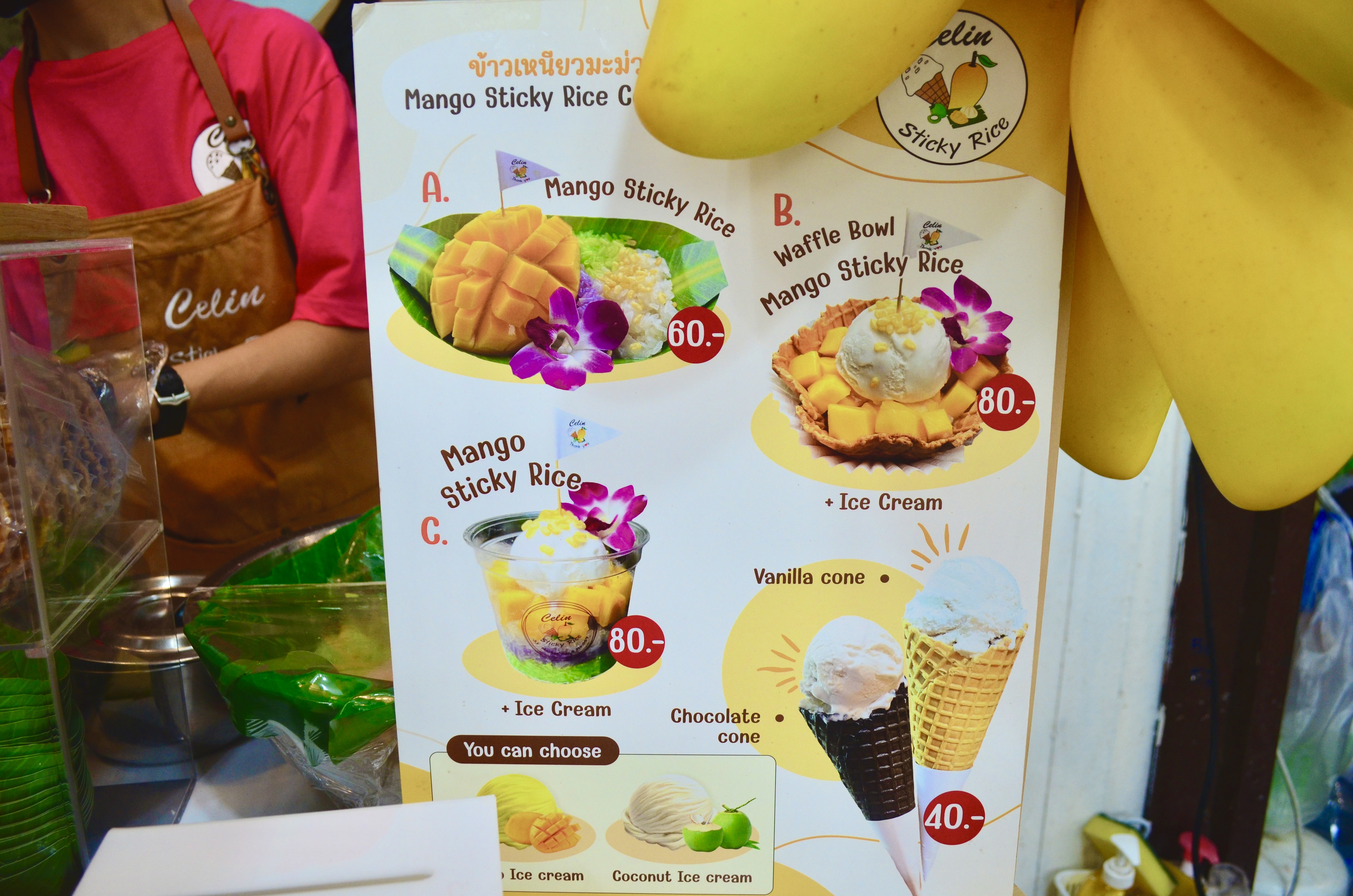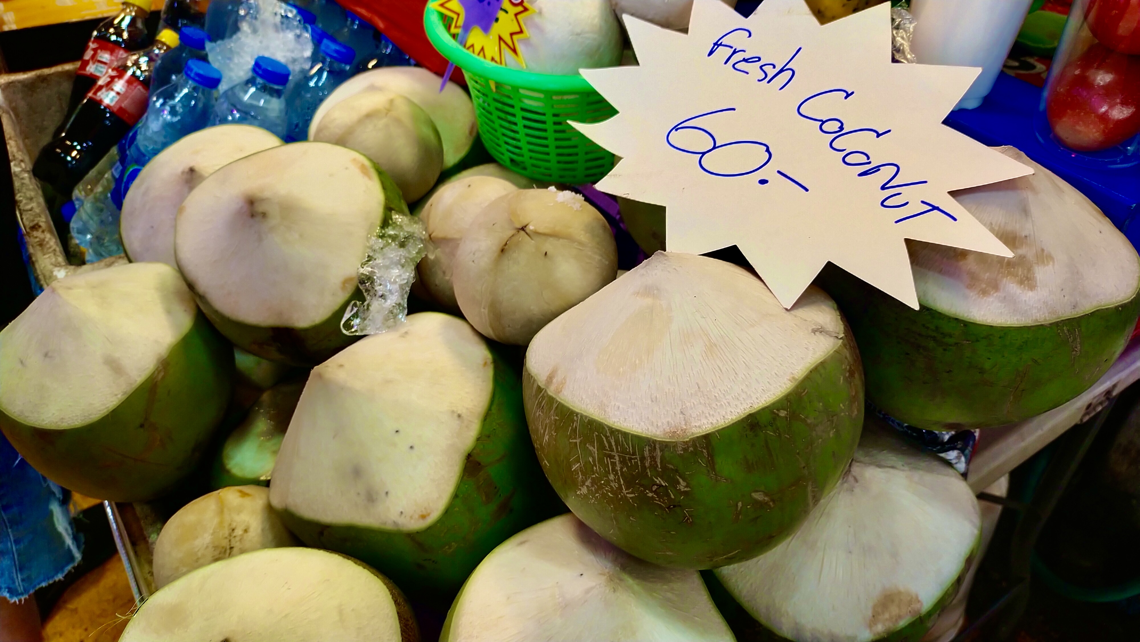 In the middle of chaos and clamor, and sweltering heat of the afternoon sun, I was tempted at the sight of fresh coconut juices and flavored cold beverages piled together. It was a delight to watch people, indulging in their scoops of coconut ice cream and a bowl of mango sticky rice. We partook and joined in on the fun too.