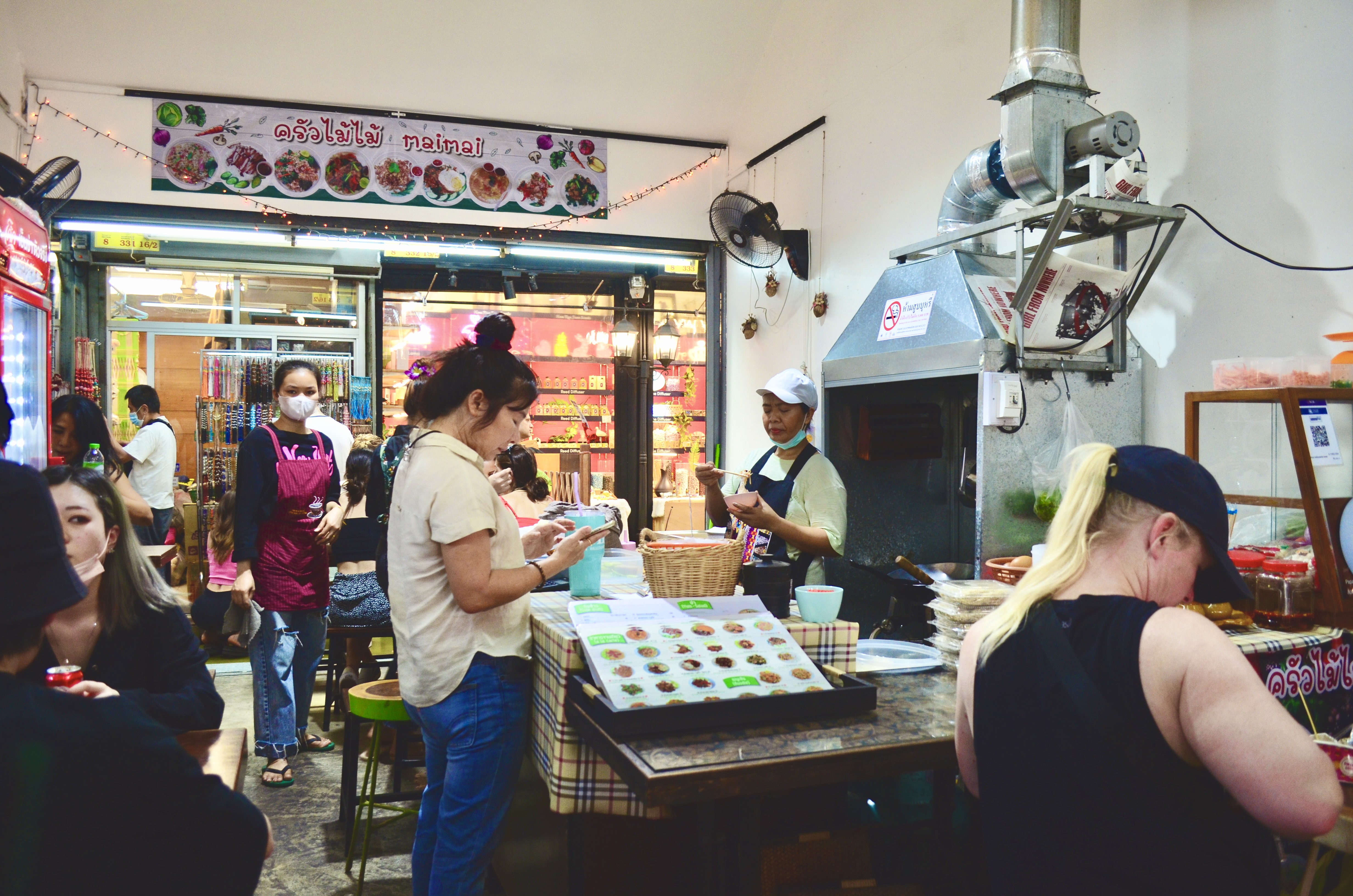 Everyone around us looked happy. The muggy weather did not seem to deter or upset anyone. Shopkeepers went about their business, selling and haggling with the buyers, while tourists and locals merged at eateries, sipping drinks and chatting while music played in the backdrop to elevate the mood of the place.