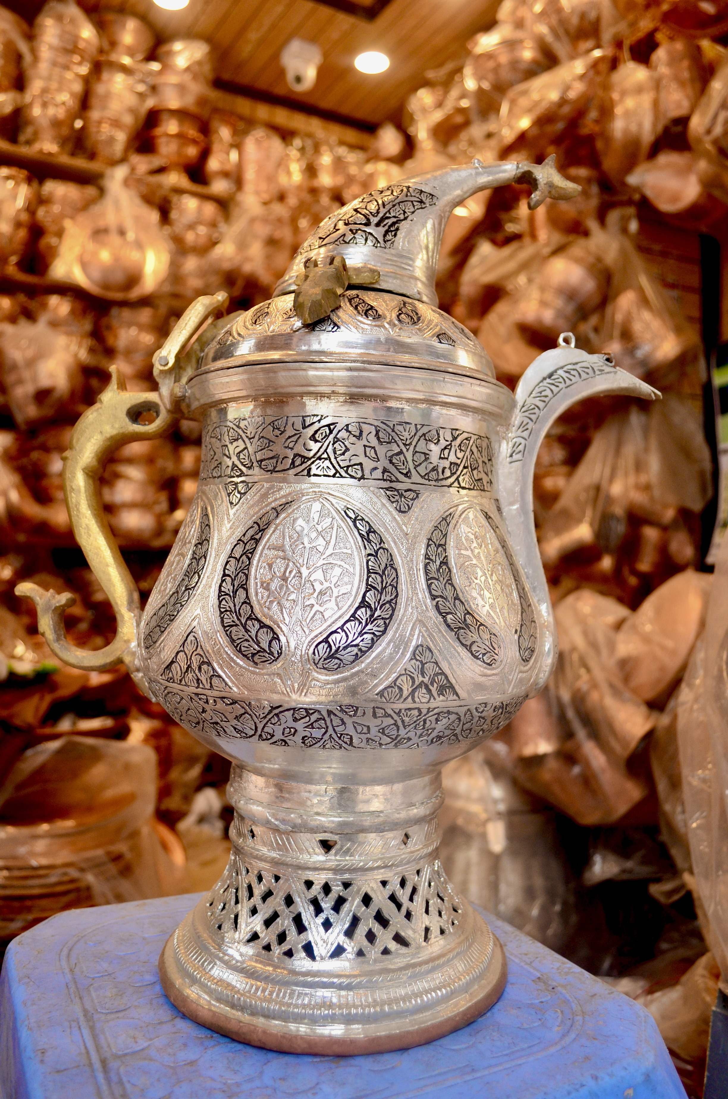 Traditionally crafted in copper, the Kashmiri Samovar—used to brew and serve tea—is a symbol of warmth, ritual, and everyday life in the valley.