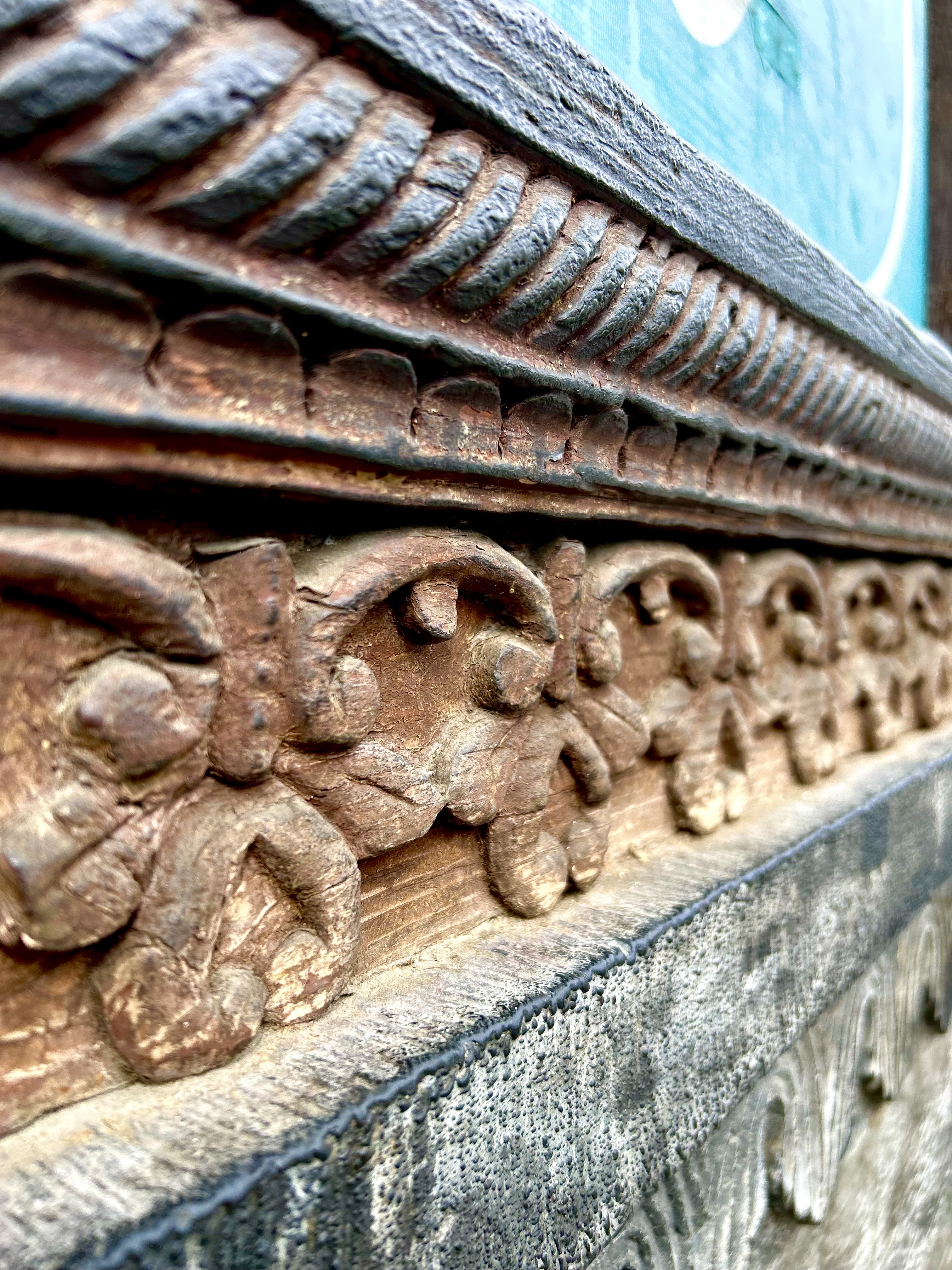 Ornate wood carvings, vibrant motifs, and delicate papier-mâchè detailing lend the space a quiet, luminous grace.